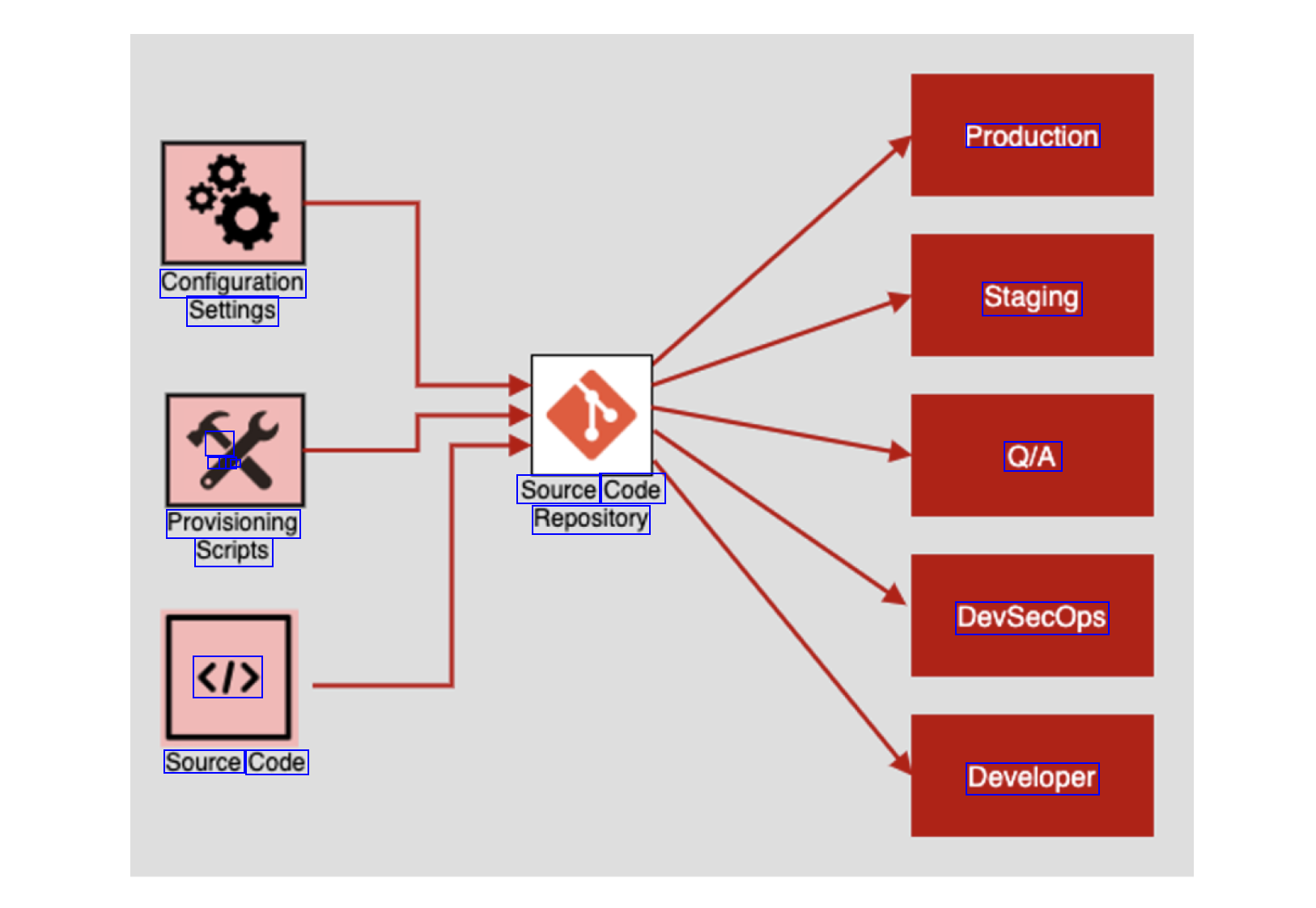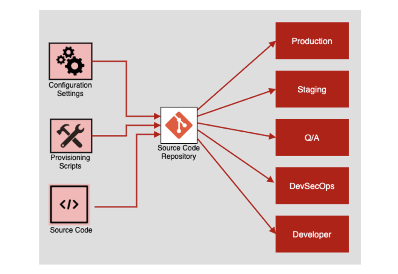 Production Configuration Settings Staging - l - Q/A Source Code Repository Provisioning Scripts DevSecOps <I> Source Code Developer