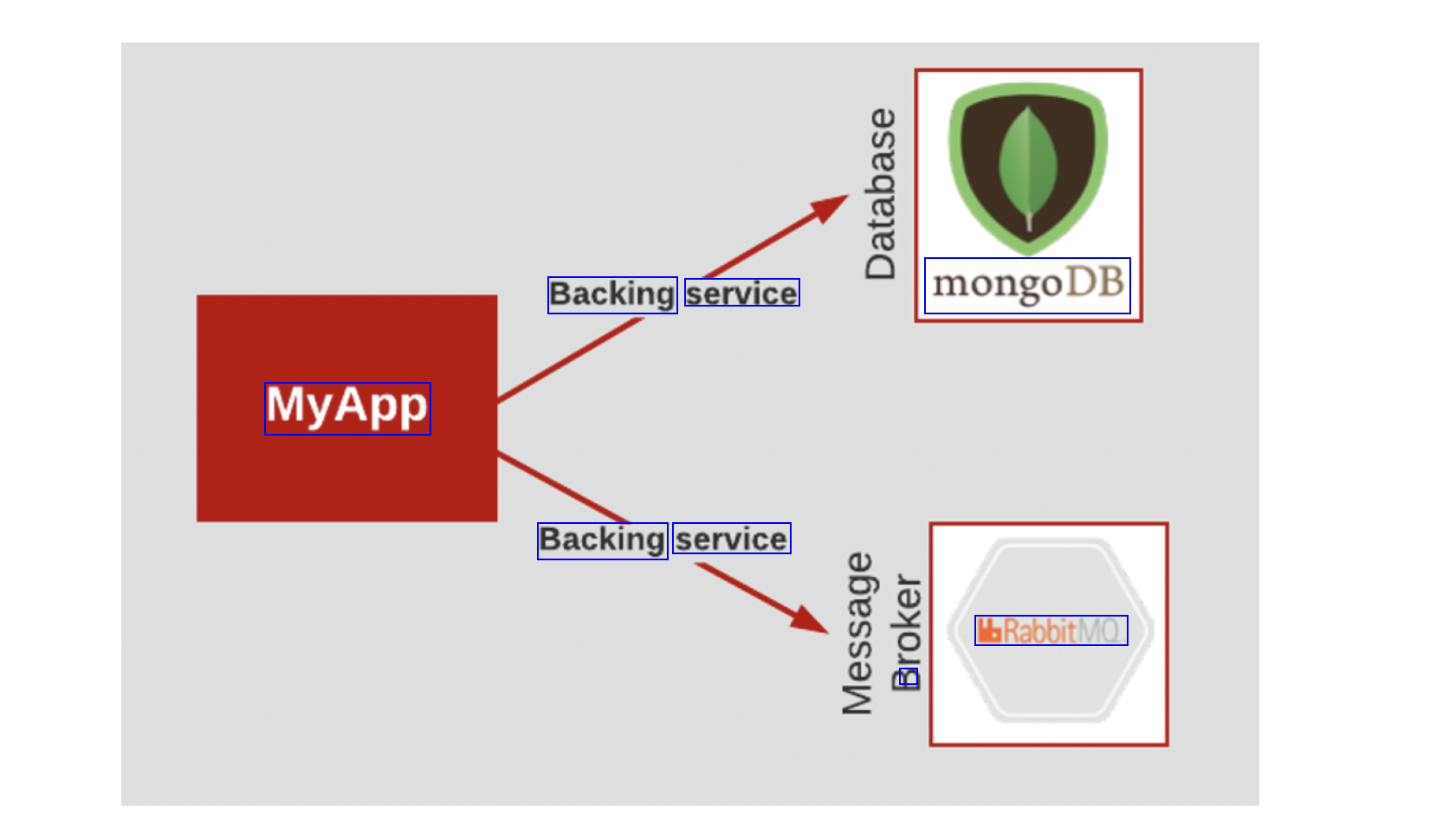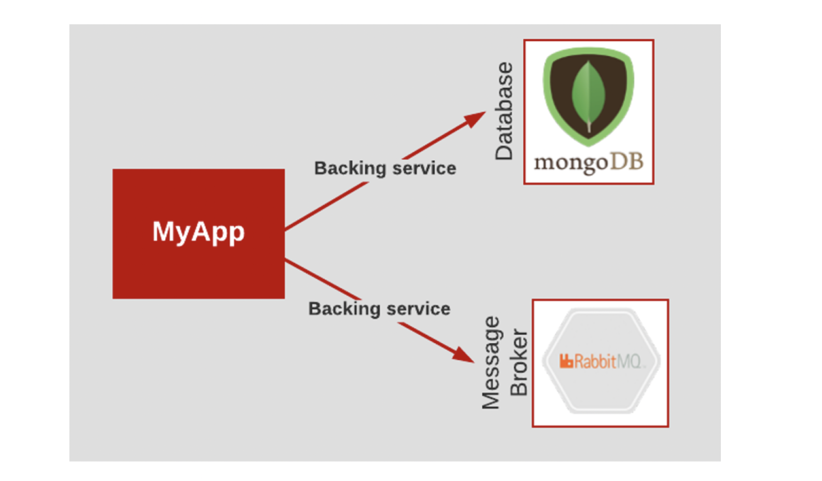 Backing service mongoDB MyApp Backing service RabbitMQ Y