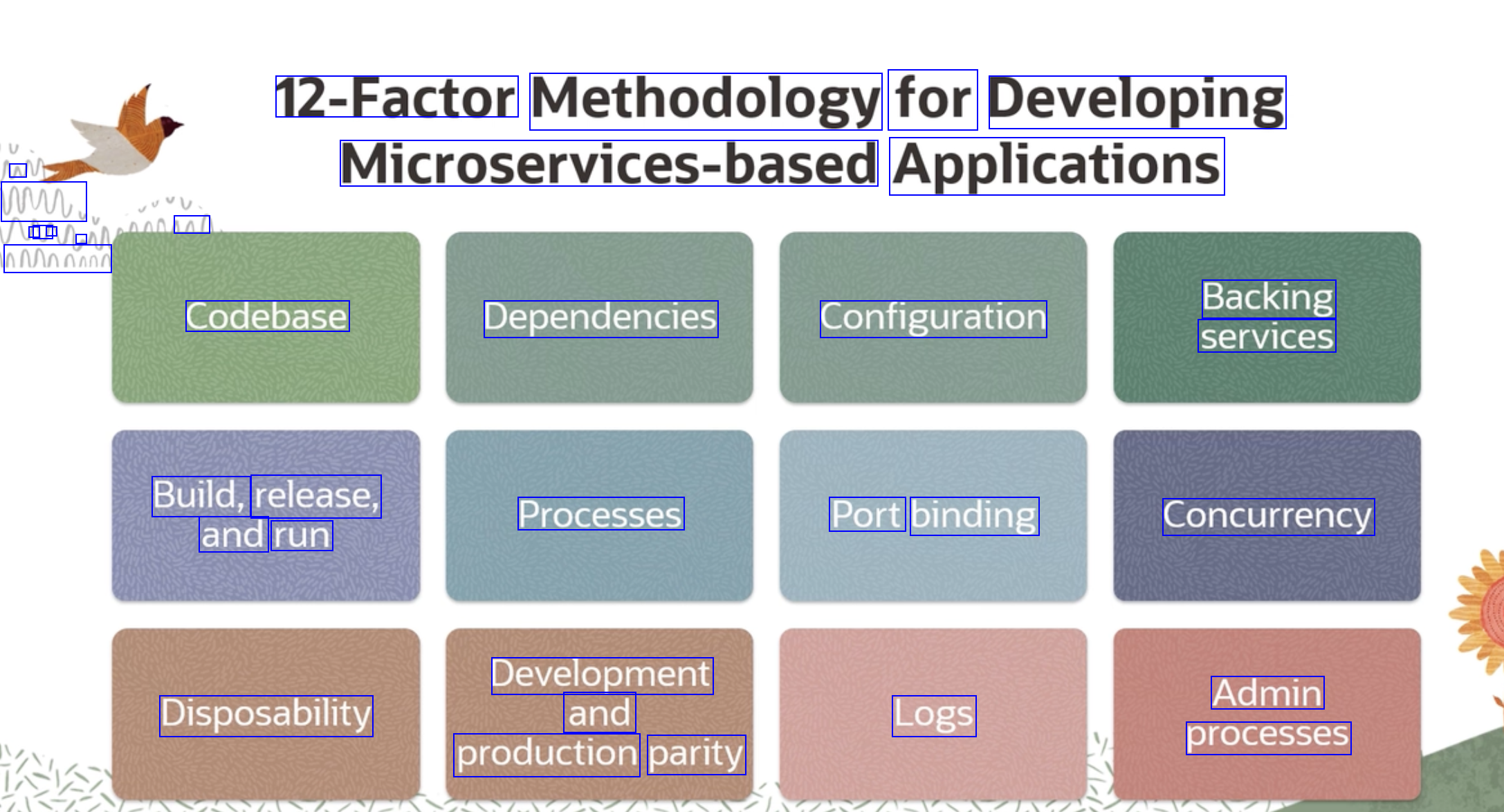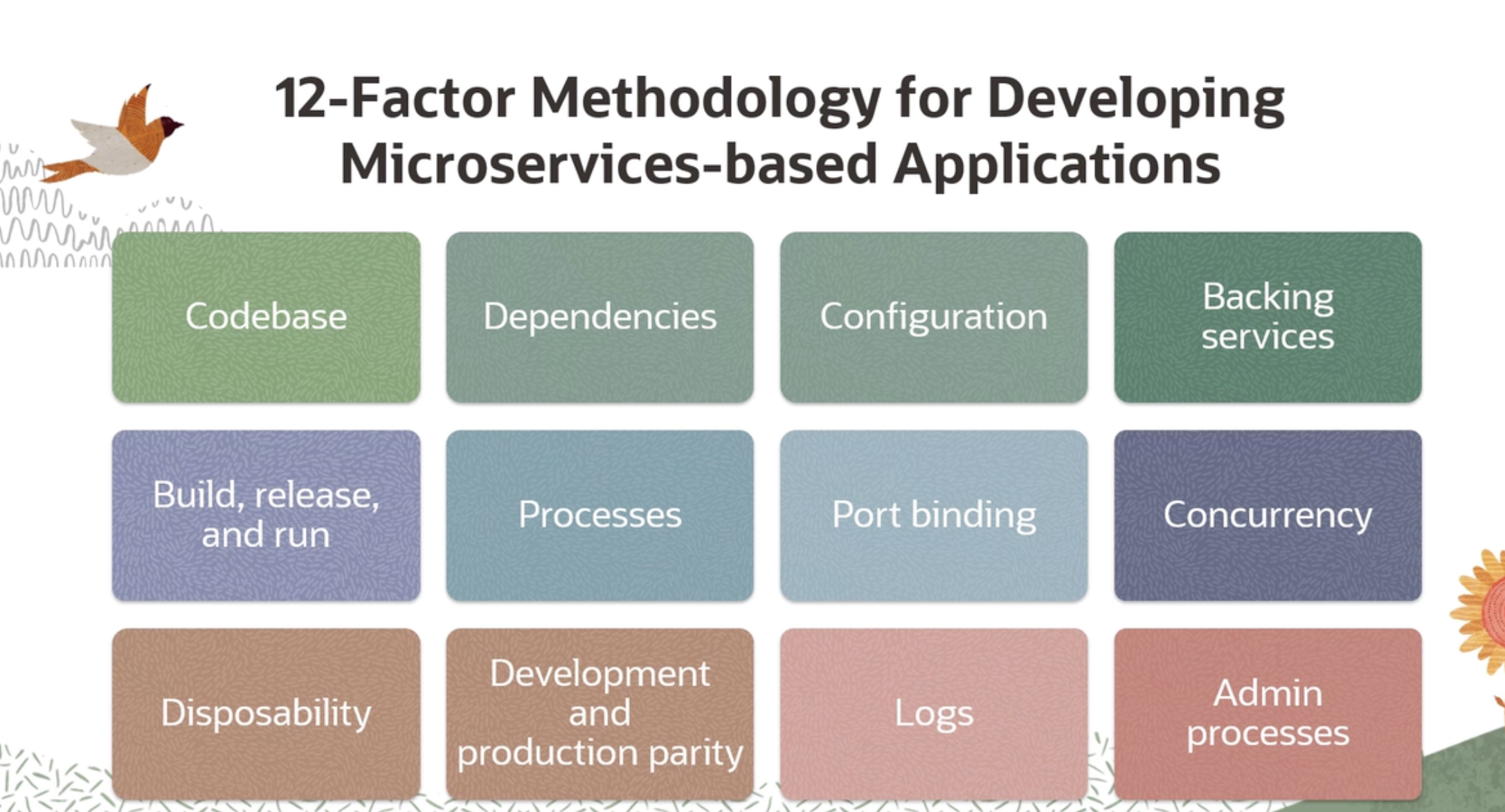 Treat backing services as attached resources The 12 factor app should be able to swap the different services, e.g. database, from different provider, from DigitalOcean to OCI, without changing code.
