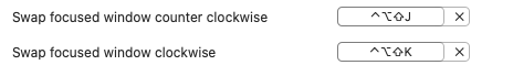 Swap focused window counter clockwise ATOJ Swap focused window clockwise ATOK * -