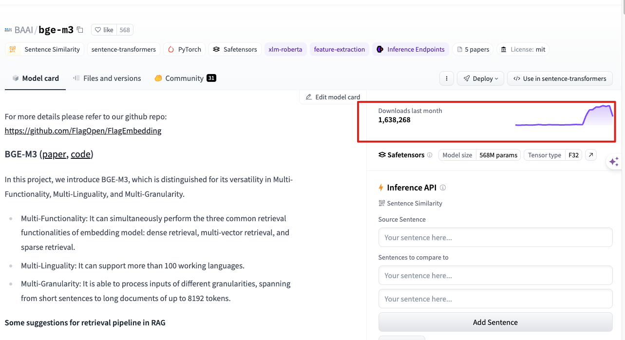 BGE-M3 (paper, code) In this project, we introduce BGE-M3, which is distinguished for its versatility in Multi-Functionality, Multi-Linguality, and Multi-Granularity.