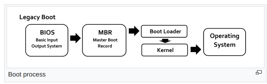BIOS -> MBR -> Boot Loader -> Kernel -> Systemd -> Process and Applications linux boot sequence