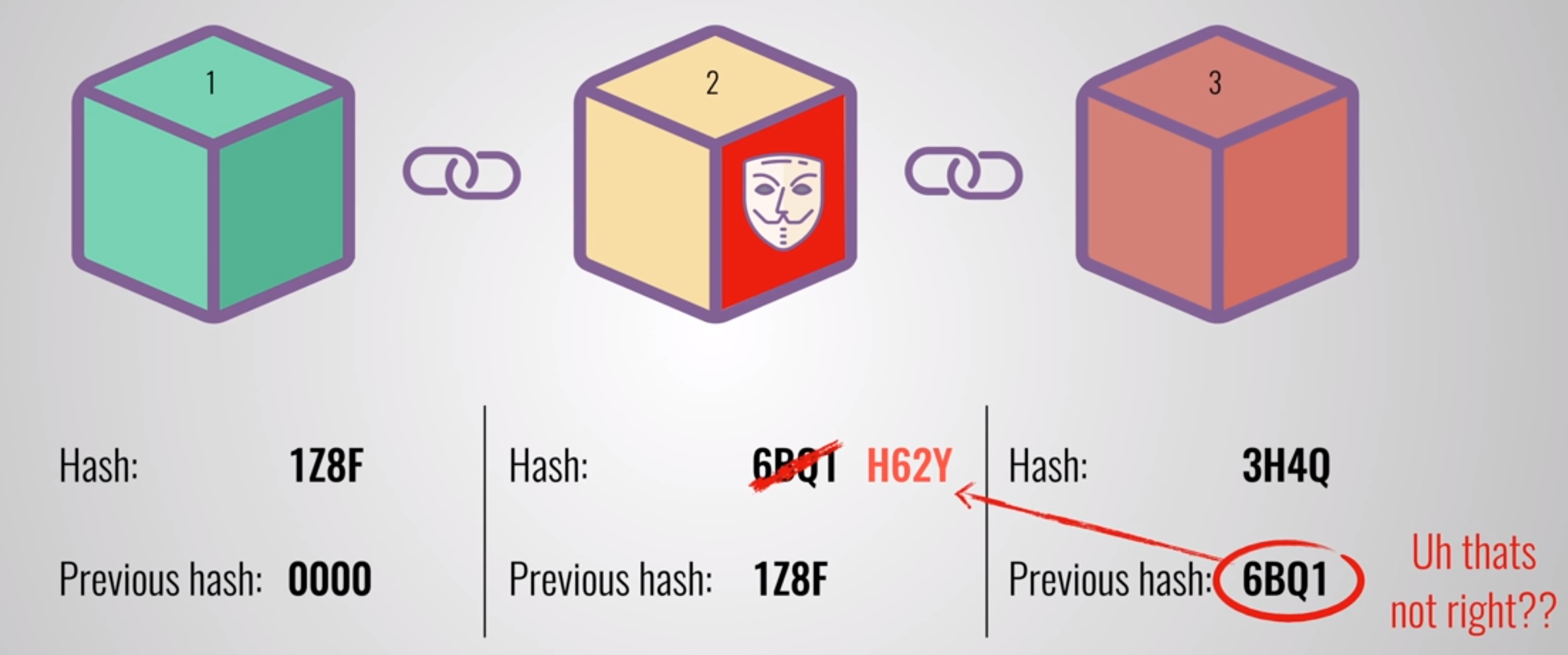 To tamper a block the hacker should have to change all the blocks in the chain, redo the proof of