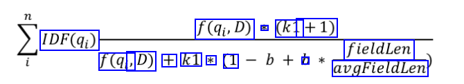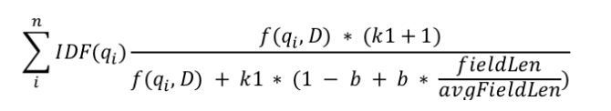 f(9iD) 1 (k1 +1) IDF(q1) fieldLen f(qi ,D) + k1 * (1 n avgFieldLen