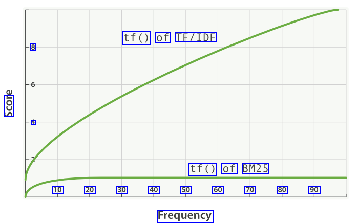 tf() of TF/IDF 8 8 + tf() of BM25 10 20 30 40 50 60 70 80 90 Frequency