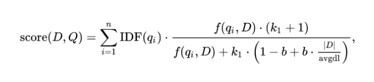 n f(qi,D) * - C - + - 1) score(D,Q) - IDF(qi) DI f(qi,D) + k1 * - - avgdl