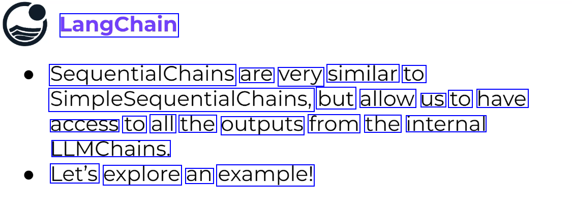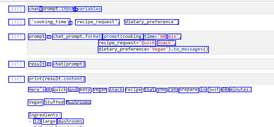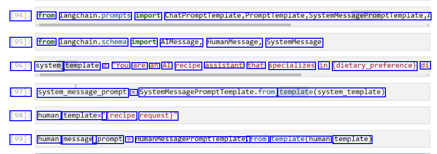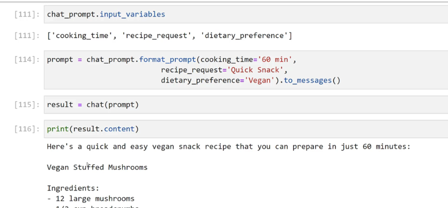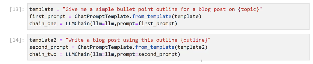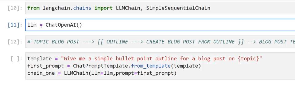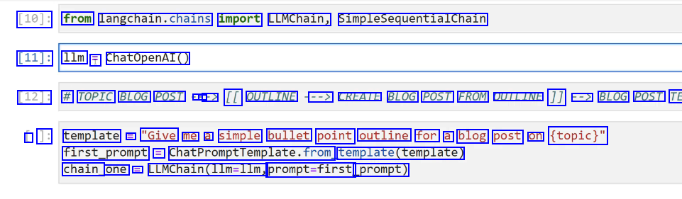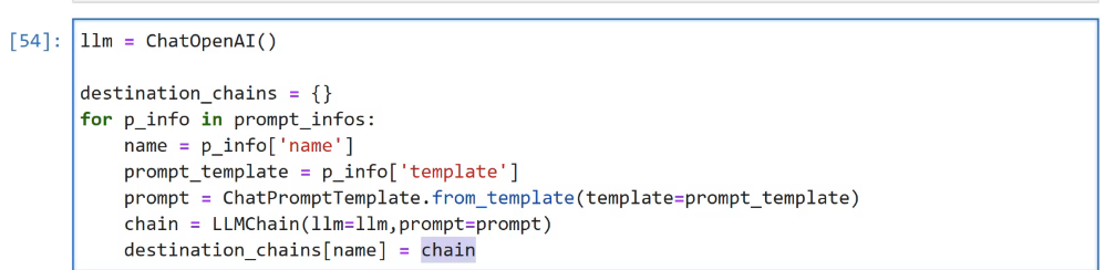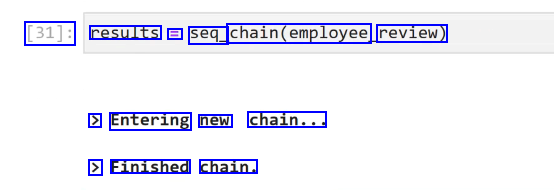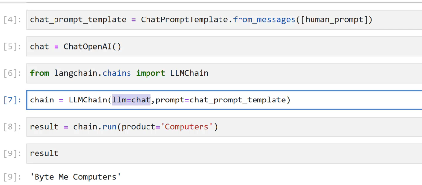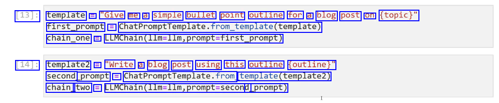 [92]: from langchain.prompts import ChatPromptTemplate [93]: 1lm = ChatOpenAI() prompt = ChatPromptTemplate.from template(template) summary_chain = LLMChain(llm-llm, prompt=prompt, output key-'review.summary) [94]: sequential_chain E SimplesequentialChain(chains=Itransform - chain, summary. chain], verbose-True) [*]: result E sequential chain(yelp_review)