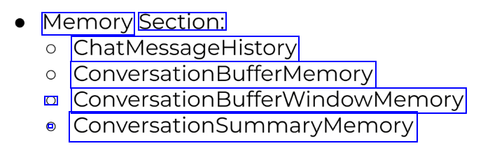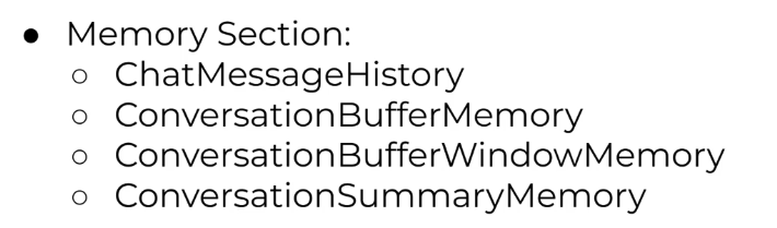Memory Section: ChatMessageHistory Conversaston@uferMemory O ConversationBufferWindowMemory - ConerstionSummapwemoy