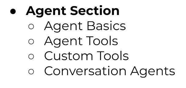 Agent Section ) Agent Basics . Agent Tools Custom Tools Conversation Agents