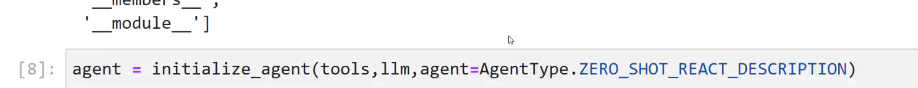 CIVS module 5 [8]: agent = initialize agent(tools, 1lm, agent: AgentType.ZERC SHOT REACT DESCRIPTION)