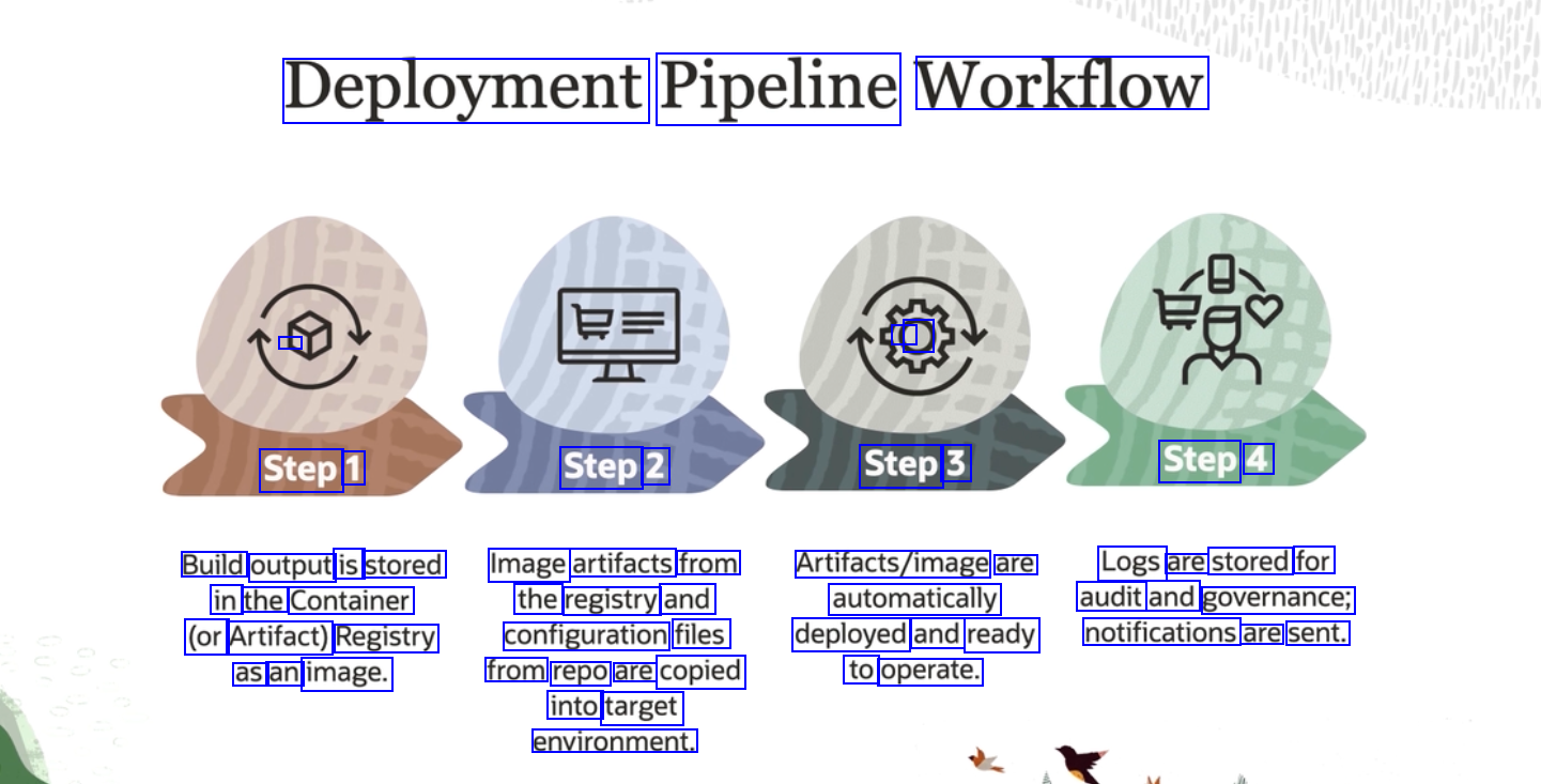 Deployment Pipeline Workflow - O Step 1 Step 2 Step 3 Step 4 Build output is stored Image artifacts from Artifacts/image are automatically Logs are stored for audit and governance; in the Container (or Artifact) Registry as an image. the registry and configuration files from repo are copied into target environment. deployed and ready notifications are sent. to operate.