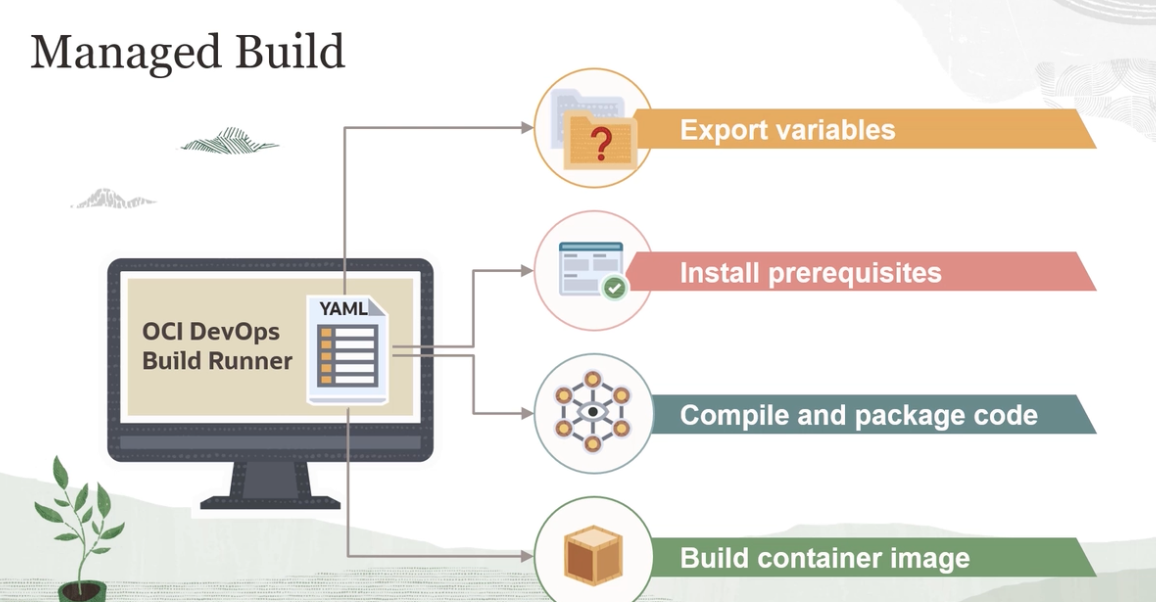 Managed Build Export variables d Install prerequisites YAML OCI DevOps Build Runner Compile and package code Build container image