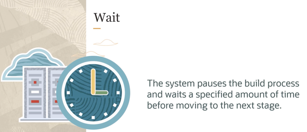 Wait The system pauses the build process and waits a specified amount of time - - E before moving to the next stage.