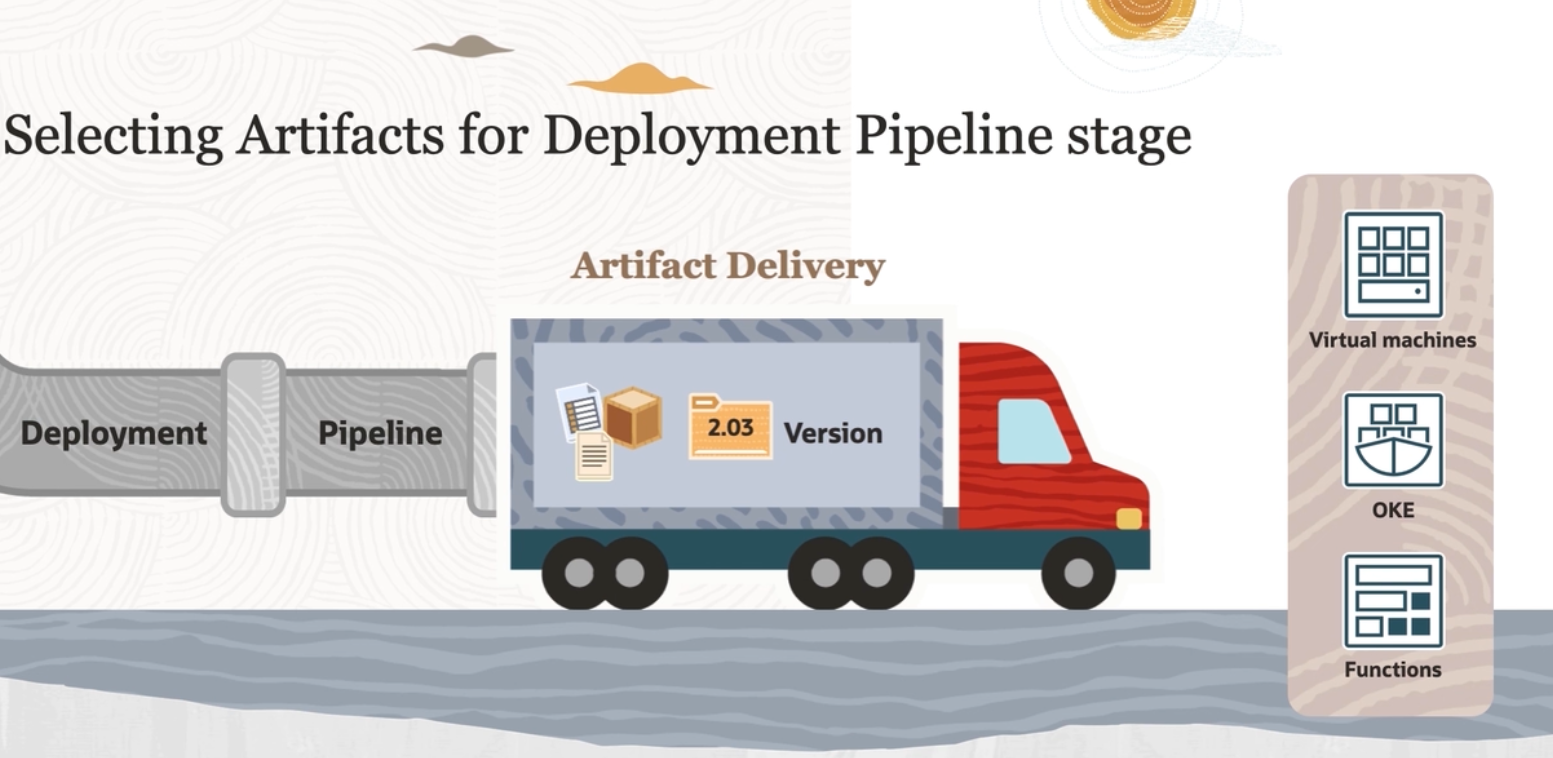 Selecting Artifacts for Deployment Pipeline stage 0 Artifact Delivery Virtual machines Deployment Pipeline 2.03 Version OKE Functions