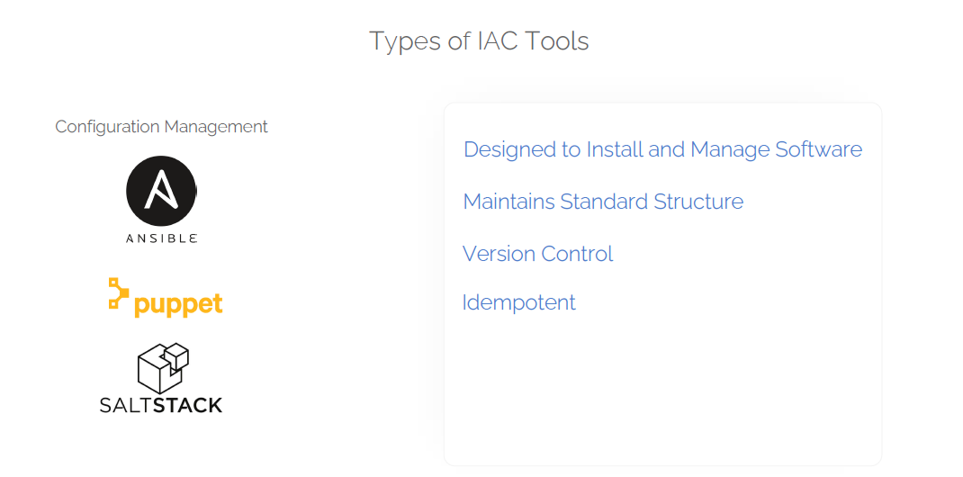 Configuration ManagementMarch 30, 2024 | seedling, permanenttags :DevOps #Examples #Ansible #Chef #Puppet #Links to this noteAnsible vs TerraformstrapiPuppet