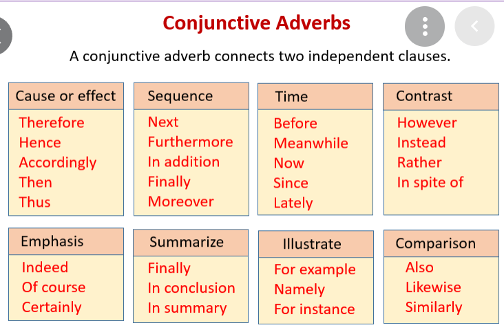 Connective s( conjunctive adverbs or linking adverbs or transition words)