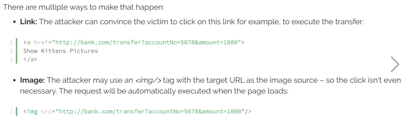 - Man in the middle attack, hacker tricks client to believe that his/her machine is the actual server or sends email with link to initial a transaction on original site.