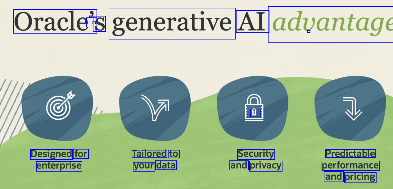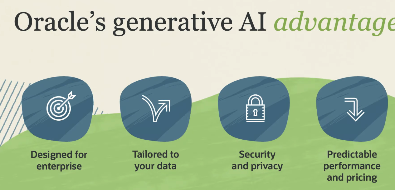 - Oracle' I - S AI - generative advantage I Designed for Tailored to your data Security and privacy Predictable enterprise performance and pricing