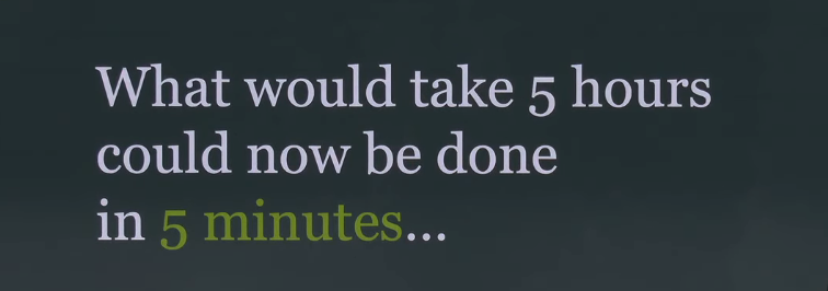 What would take 5 hours could now be done in 5 minutes...