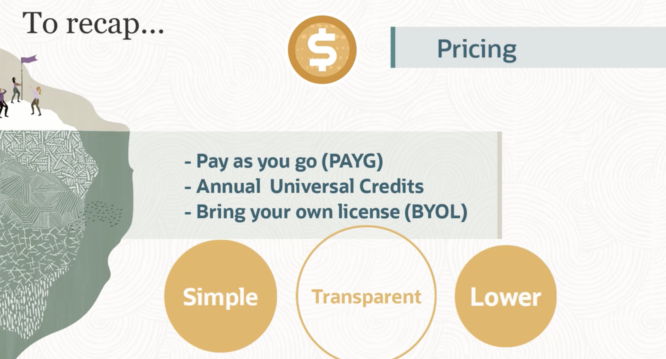 To recap... $ Pricing N - Pay as you go (PAYG) Annual Universal Credits = Bring your own license (BYOL) Simple Transparent Lower