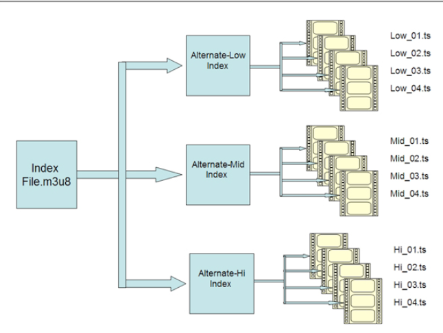 Then determines which quality is ideal and select the playlist index to start playing. For instance in this example, the selected 1080.m3u8 index and started fetching the videos files of that resolutions. Even during the playback, if the network speed drops, the player can switch to different resolution index file.
