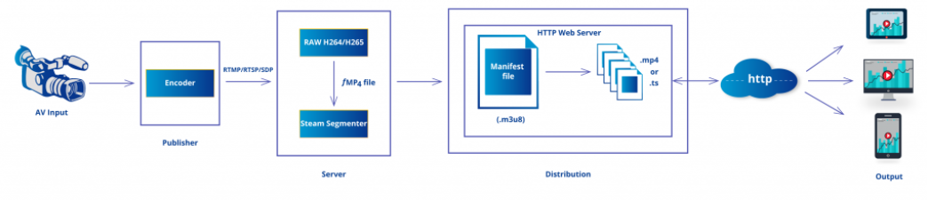 As an HTTP-based technology, no streaming server is required, so all the switching logic resides on the player.