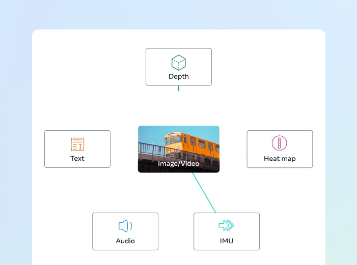 Introducing ImageBind, the first AI model capable of binding data from six modalities at once, without the need for explicit supervision. By recognizing the relationships between these modalities — images and video, audio, text, depth, thermal and inertial measurement units (IMUs) — this breakthrough helps advance AI by enabling machines to better analyze many different forms of information, together. By Meta