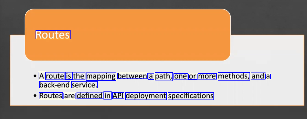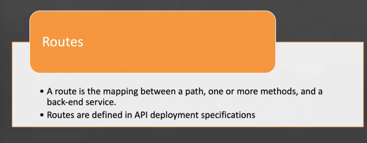Routes A route is the mapping between a path, one or more methods, and a back-end service. Routes are defined in API deployment specifications