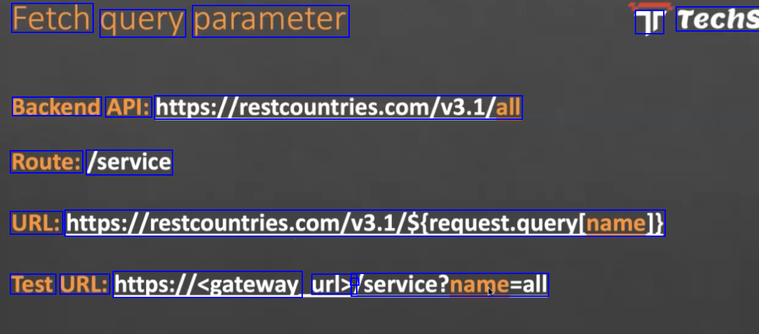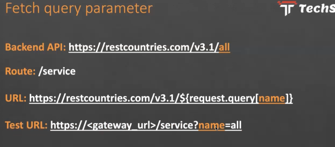 Fetch query parameter T Techs Backend API: httpss/restcountries.com/va.1/All Route: /service URL: htps/restcountries.com/a1/Sicequest.query/namel) Test URL: https://sgateway url> - /service?name-all