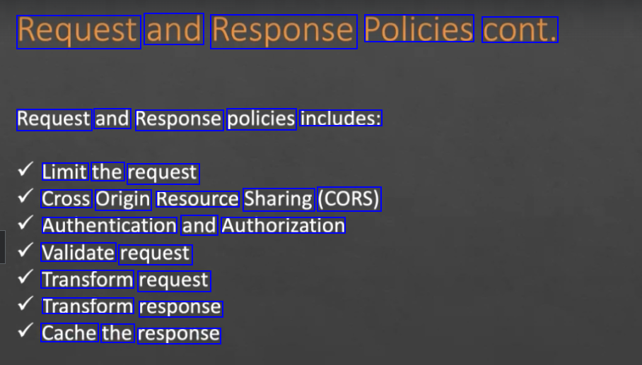 policy, request transformation and response caching policies can be applied.