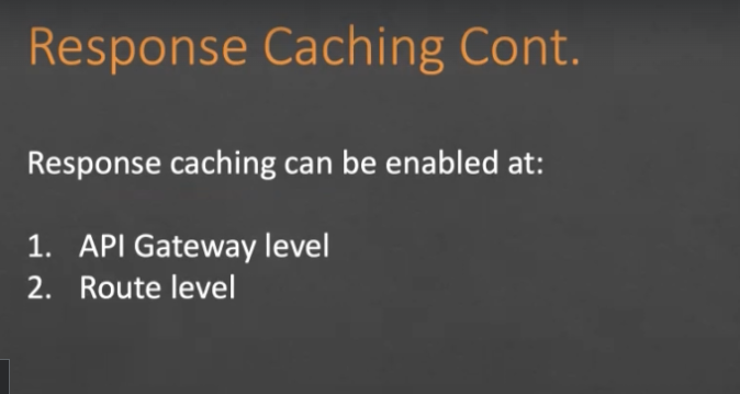 Response Caching Cont. Response caching can be enabled at: 1. API Gateway level 2. Route level