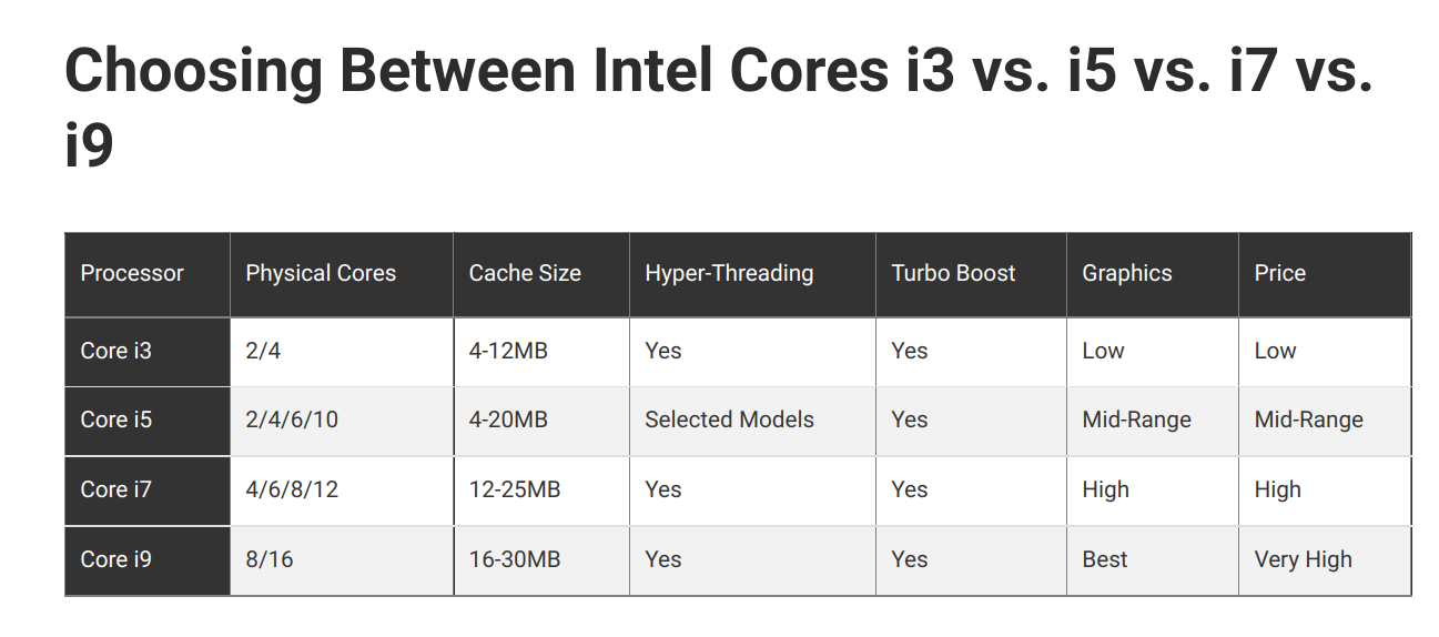 i3 vs i5 vs i7 vs i9 #