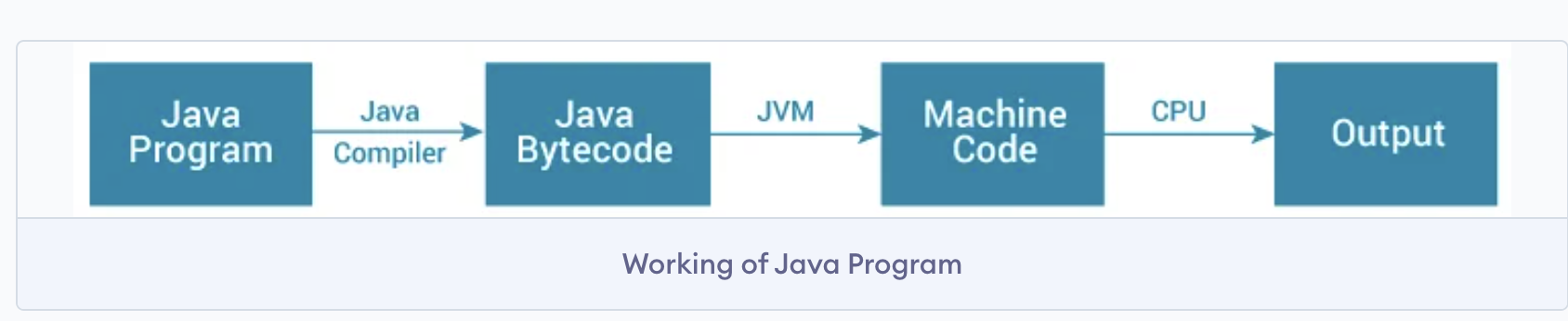 Java Java Java JVM Machine CPU Output Program Compiler Bytecode Code Working ofJava Program