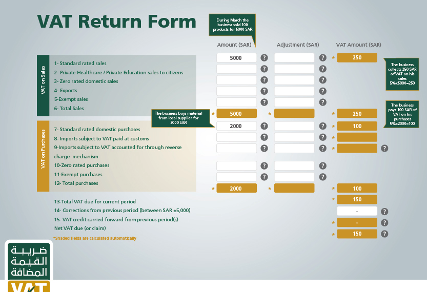 These calculations help ensure accurate reporting and reclaiming of Value Added Tax for purchase activities under KSA VAT regulations.