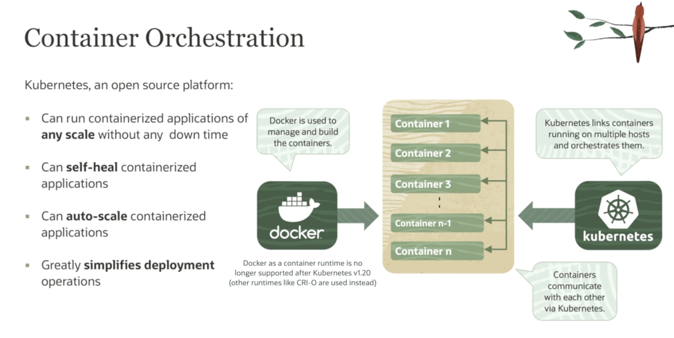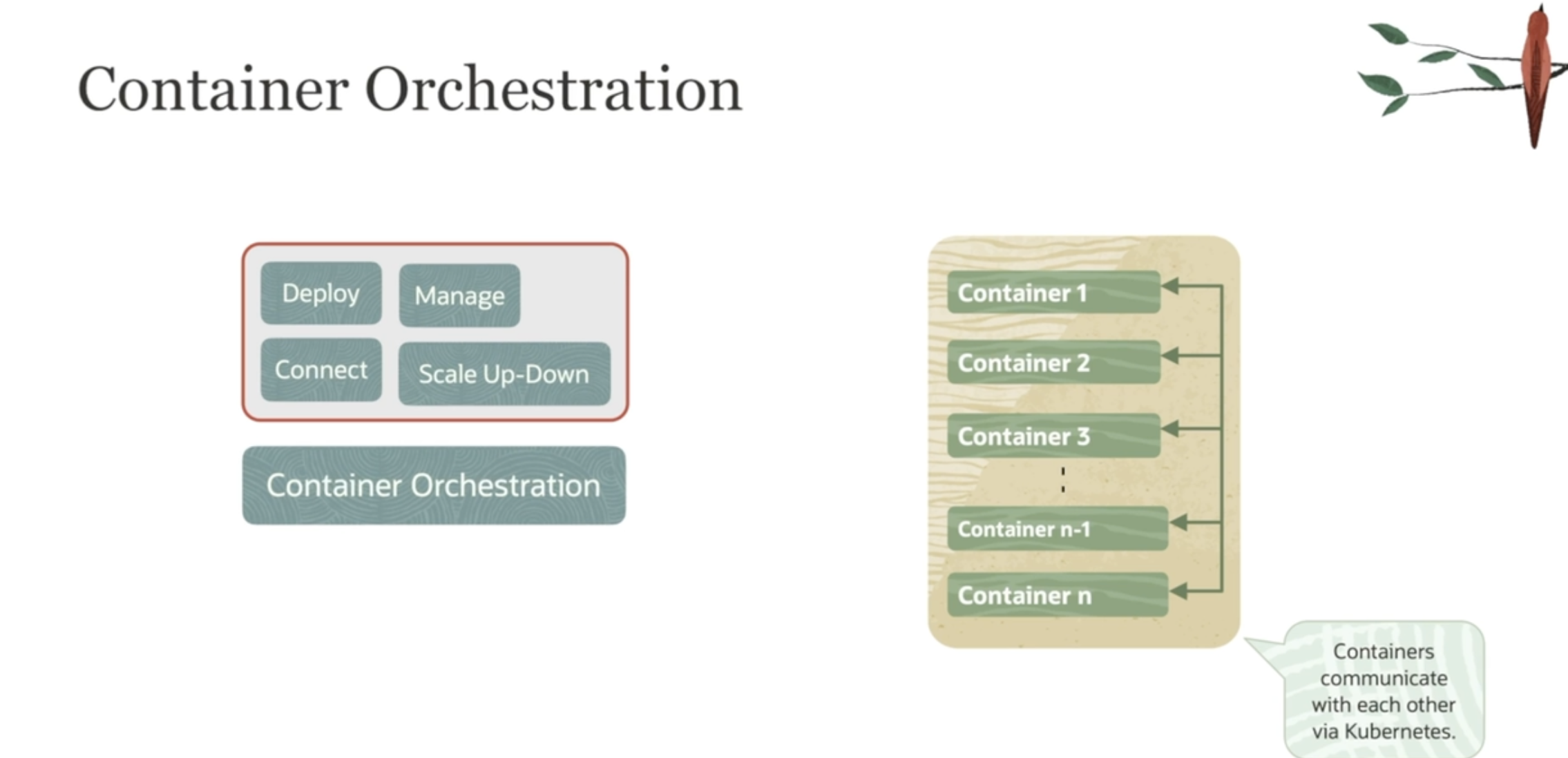 - However, it doesn’t replace container orchestration platforms. For use cases that require container orchestration, use OKE.