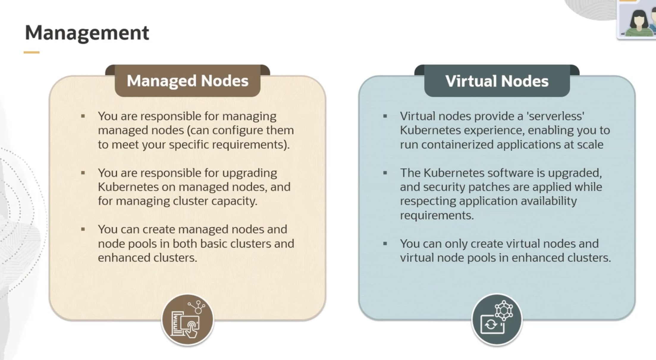 With Virtual Nodes, on the other hand, customers can run containerized applications at scale without having to worry about the operational tasks of managing, scaling, upgrading, and troubleshooting the node infrastructure. This delivers a pure serverless Kubernetes experience
