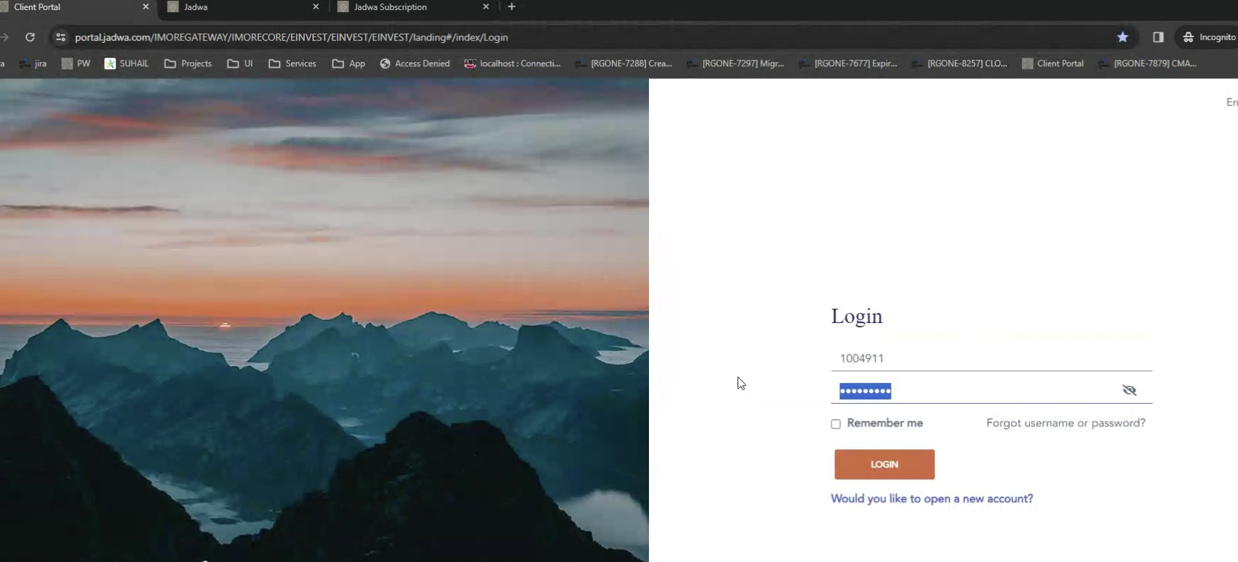 new user online account opening with new user name and password.