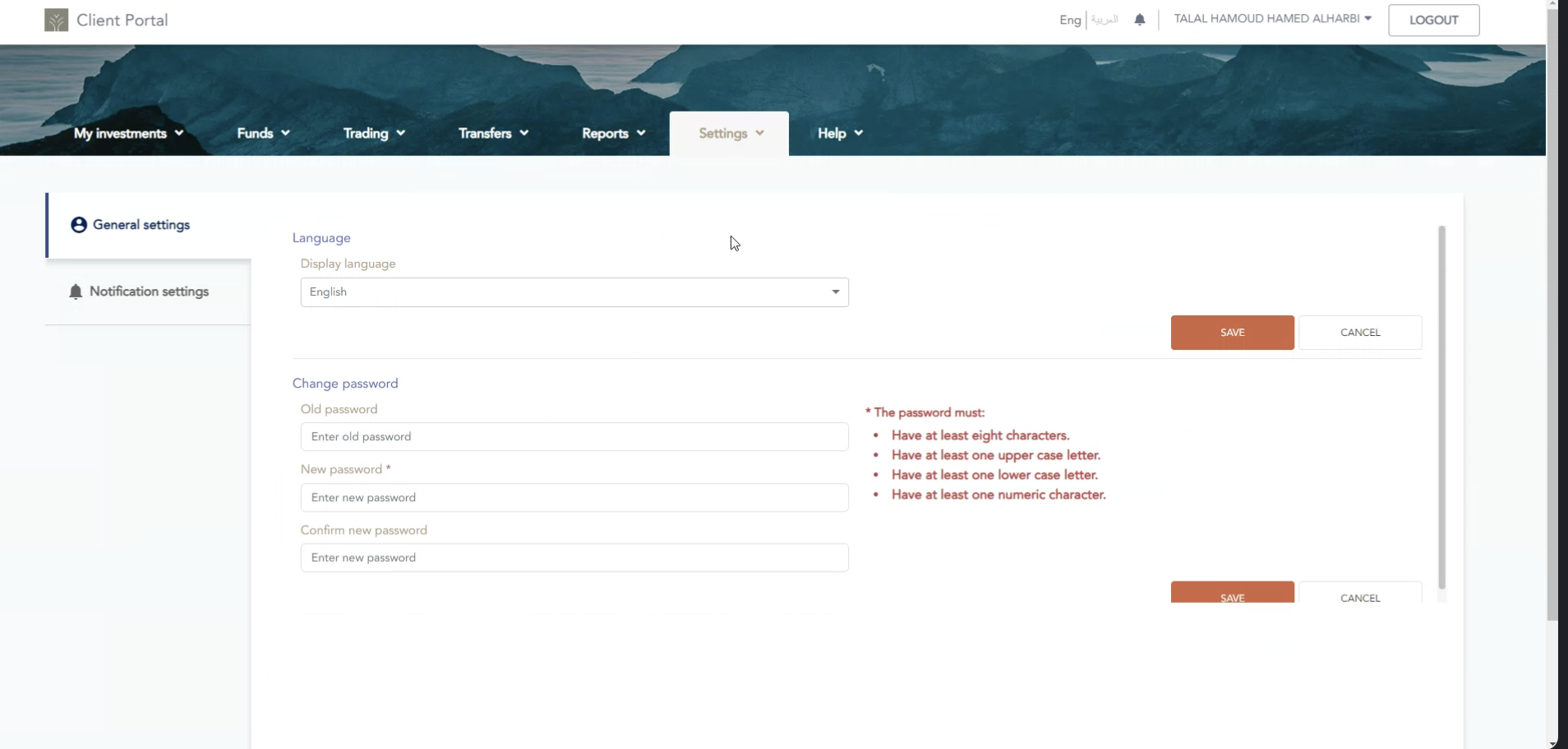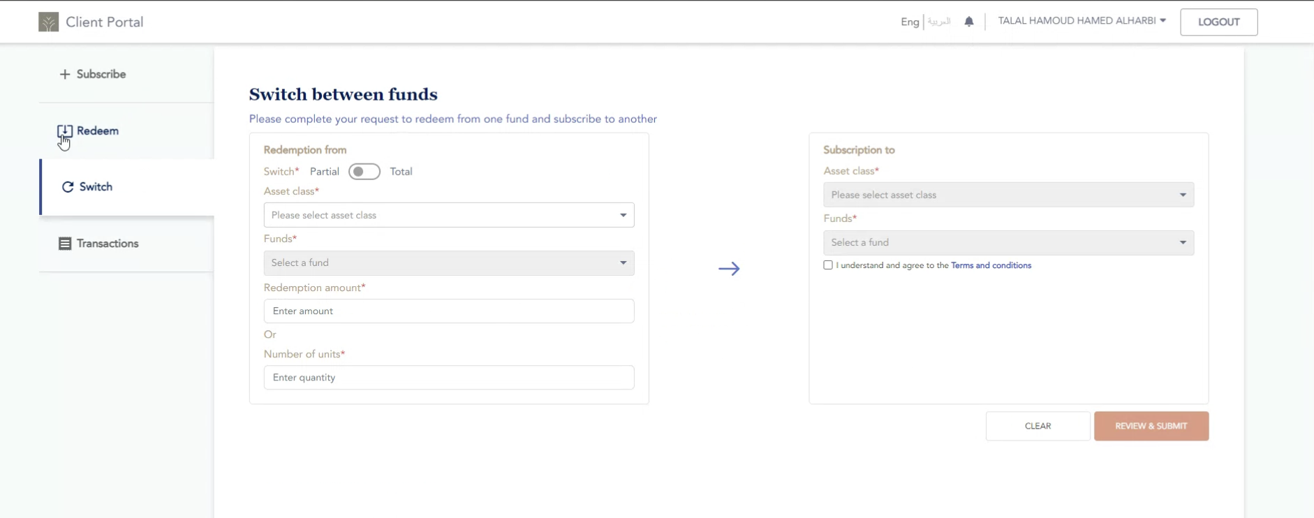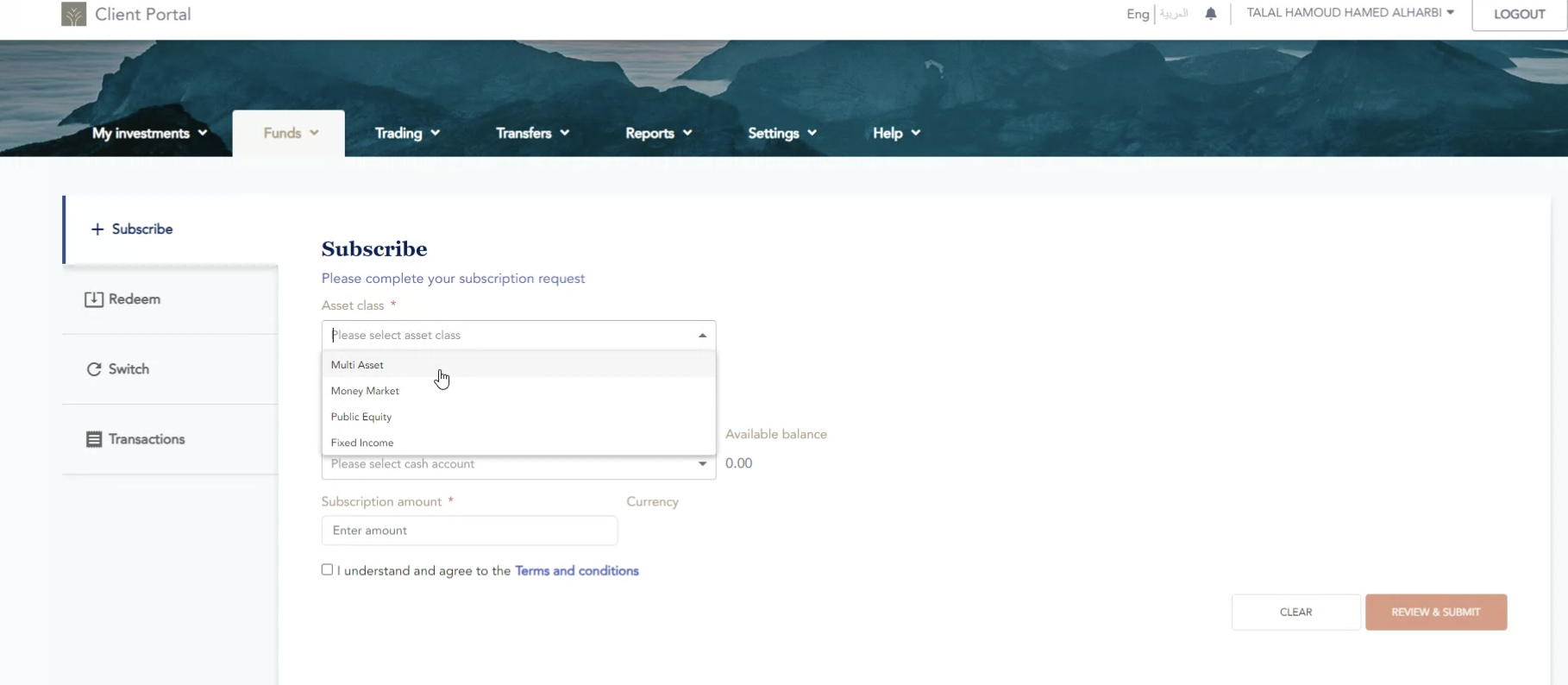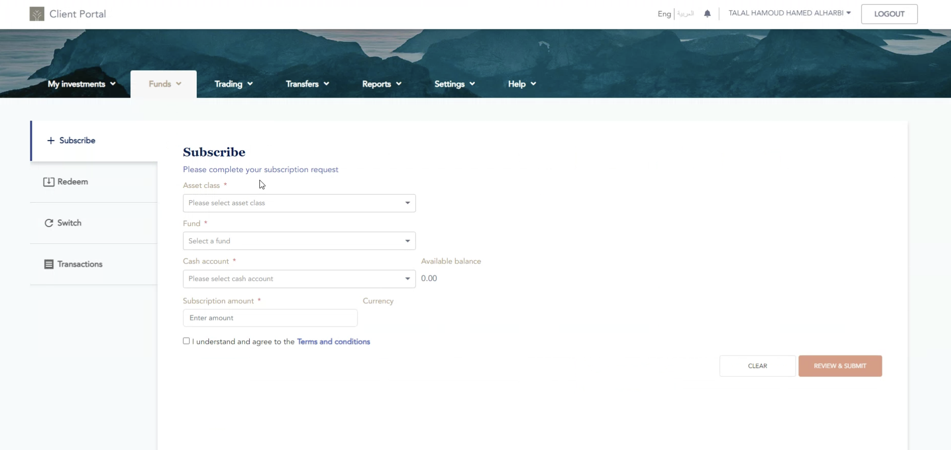 - client’s own account from investment account.