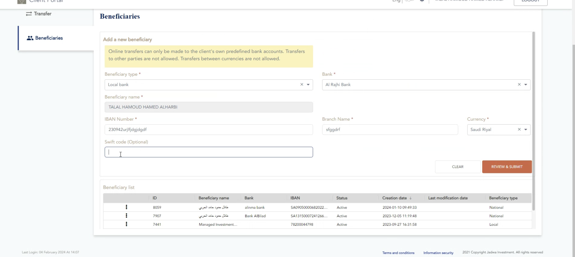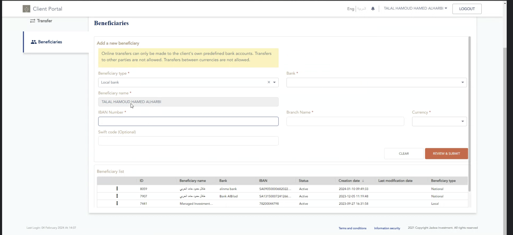 beneficiaries are local banks currently, but they want to add international banks.