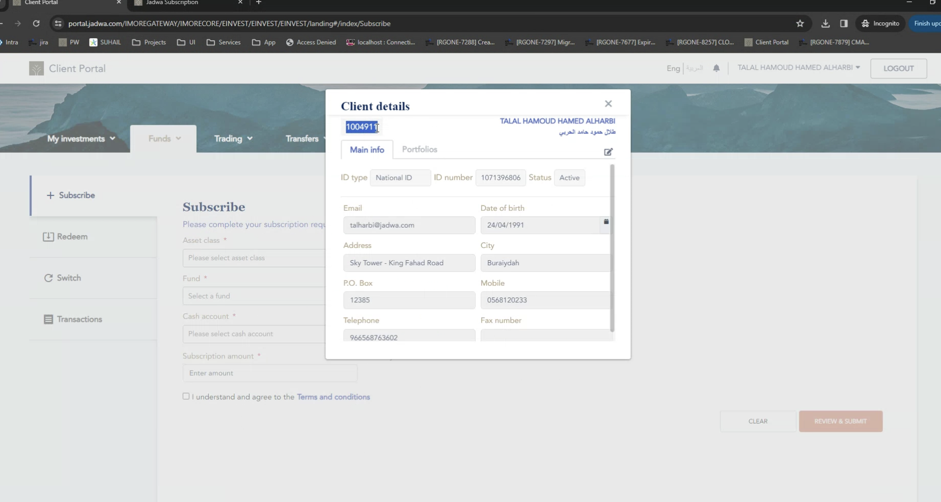 individual clients vs corporate clients: DBM- clients 50 millions investment and above less than 50 normal clients. jadwa maintains financial data on behalf of corporate, related to investment.
