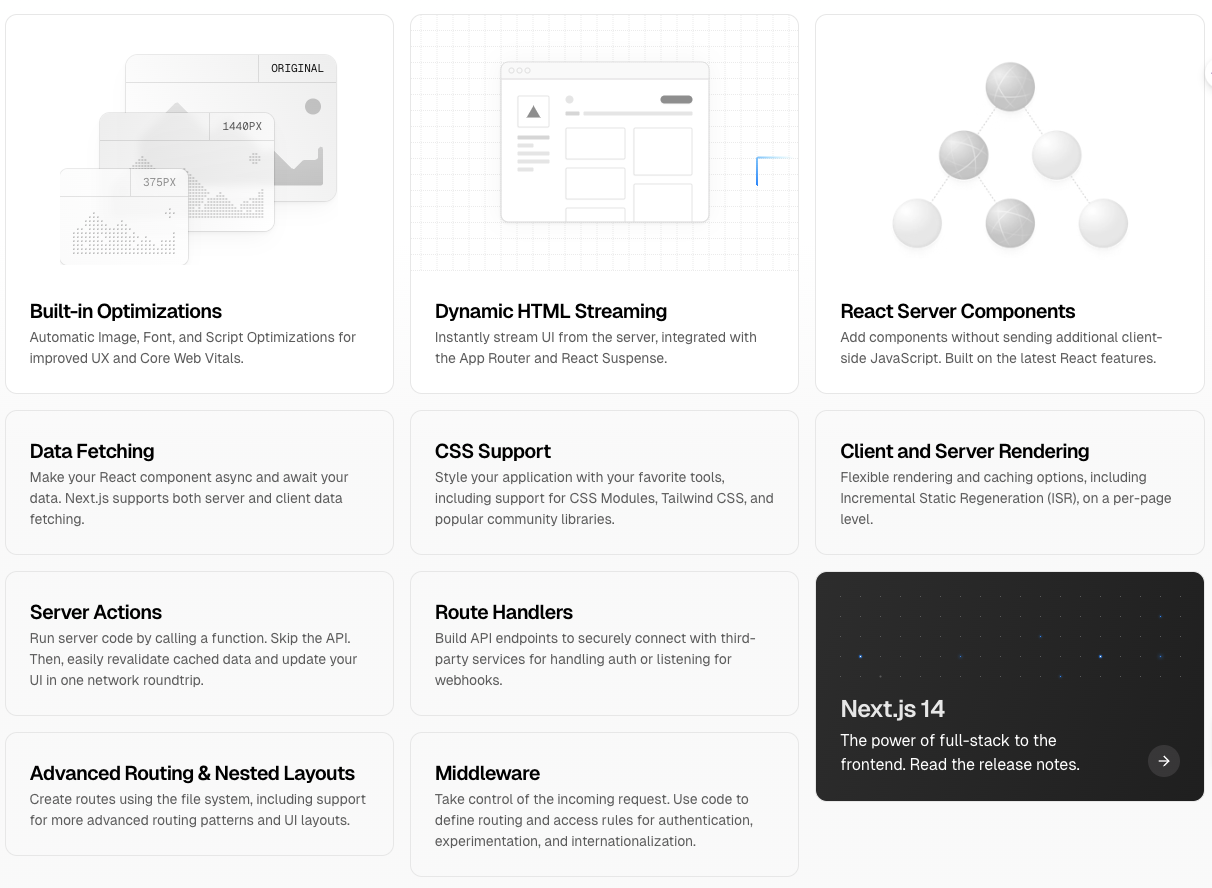 - Incremental Static Generation: Add and update statically pre-rendered pages incrementally after build time.
