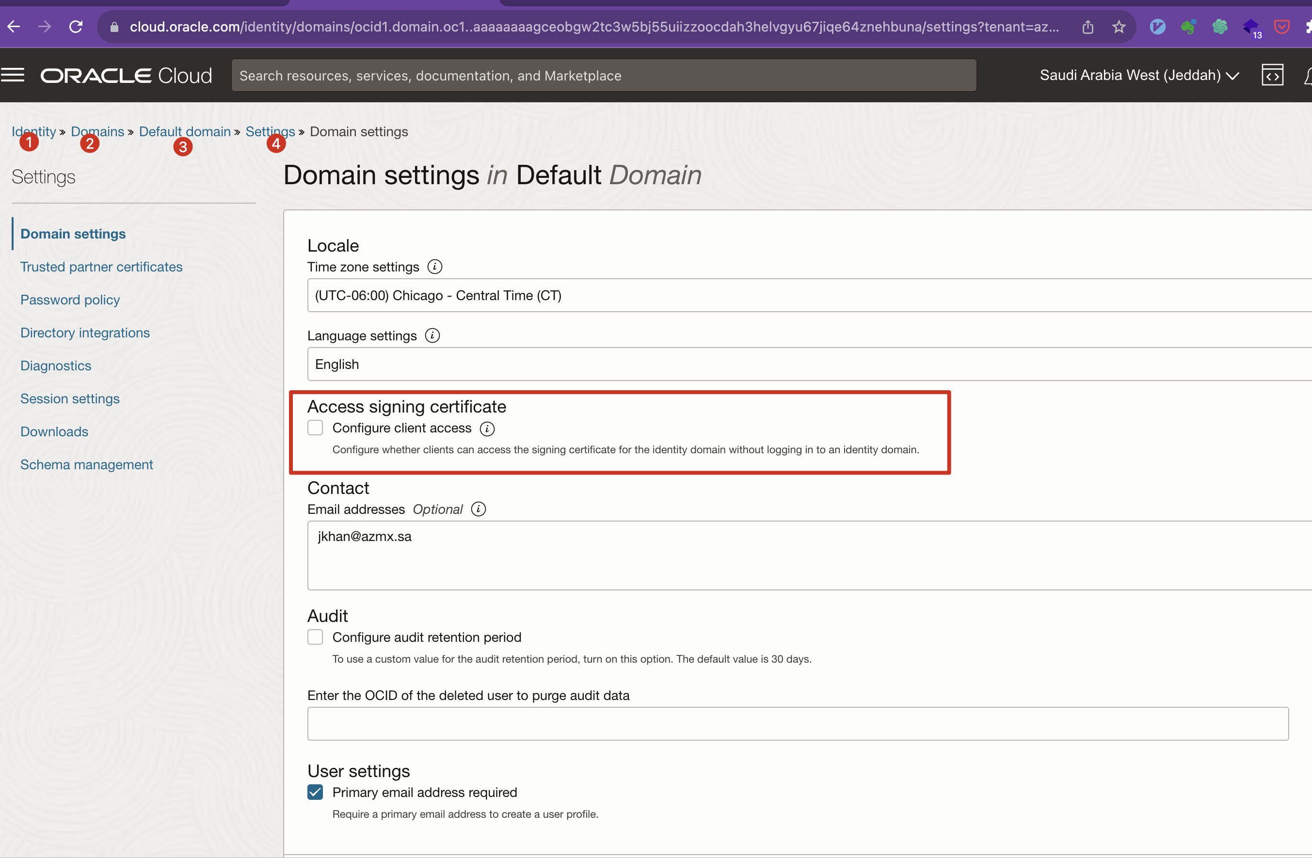 Add path to the “admin/v1/SigningCert/jwk” identity domain endpoint: e.g.: https://idcs-xxxxxxx.identity.oraclecloud.com/admin/v1/SigningCert/jwk