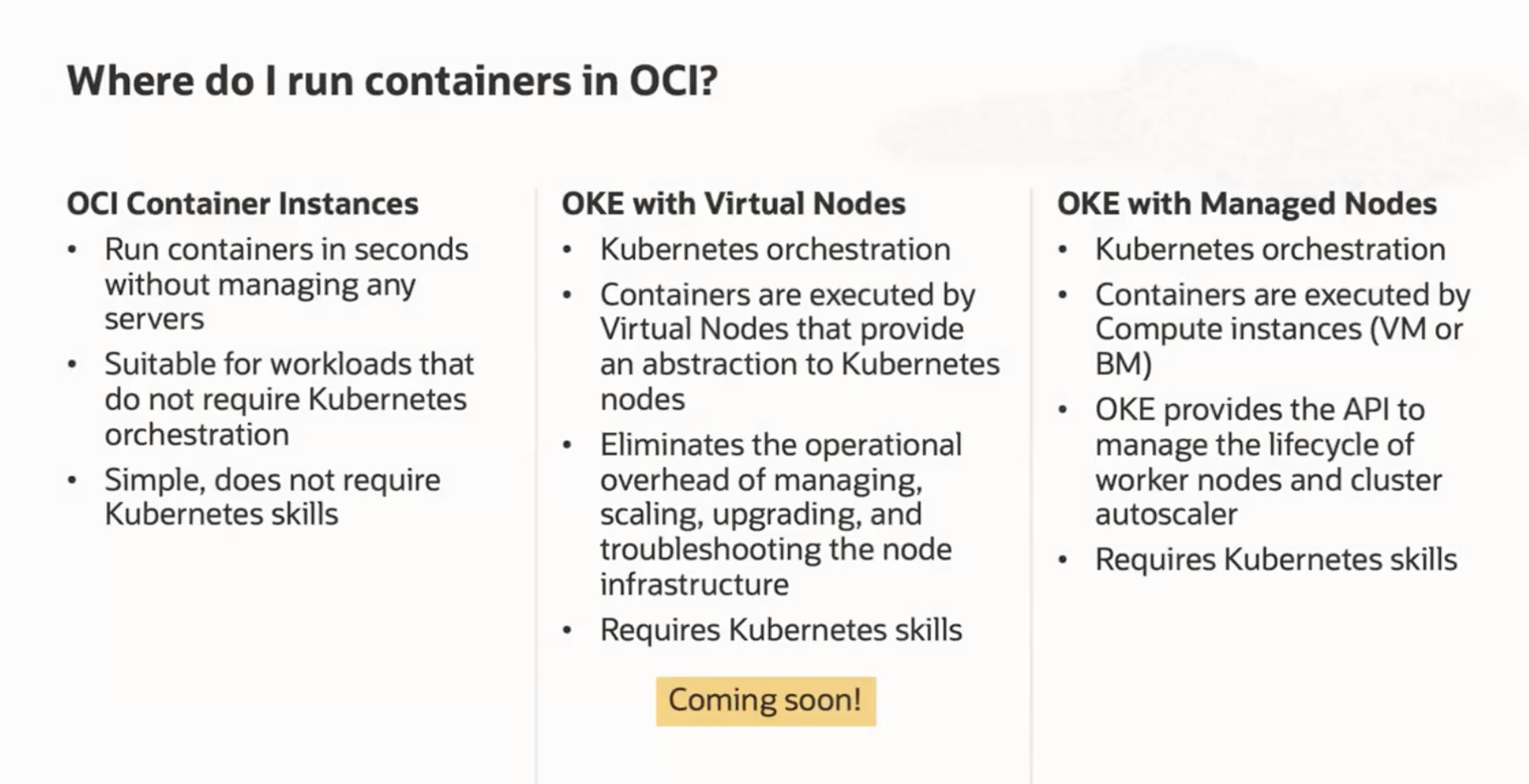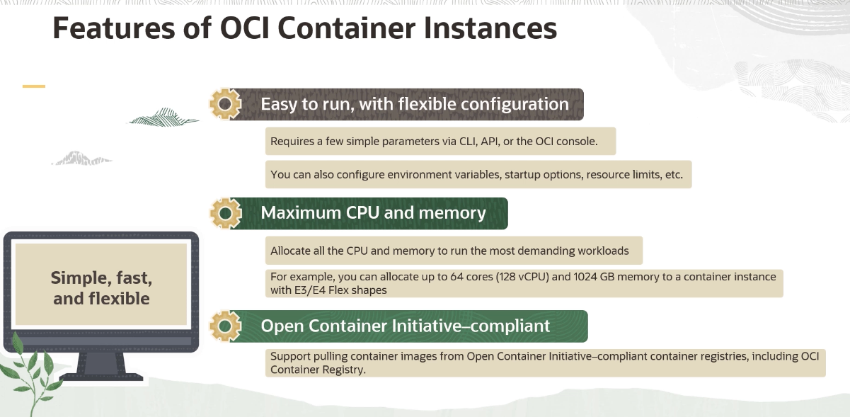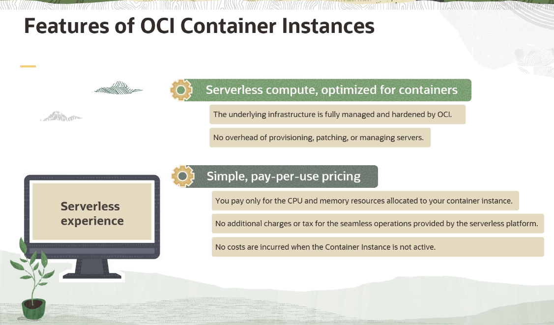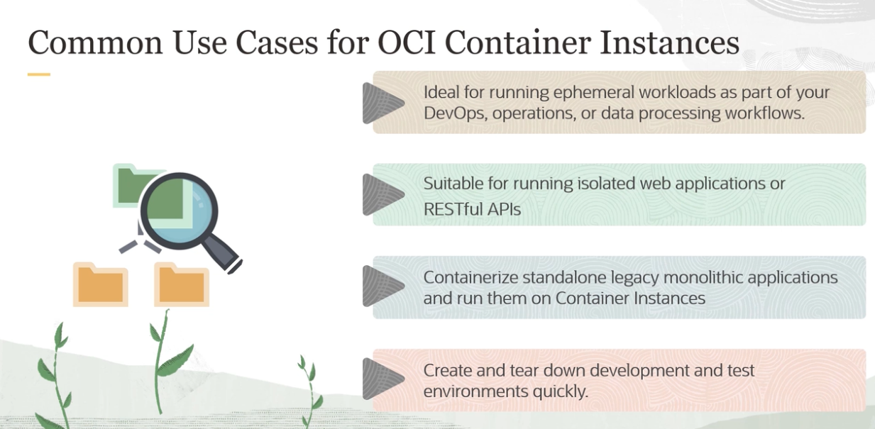 Using OCI Container Instances is a good idea before using Kubernetes This is mentioned by the architects in this youtube