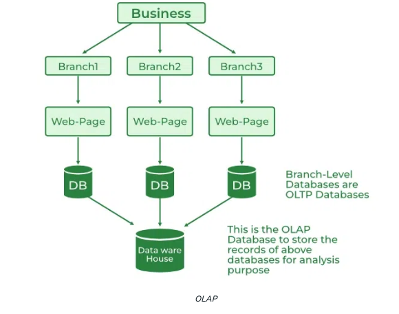 Business Branchl Branch2 Branch3 Web-Page Web-Page Web-Page Branch-Level Databases are OLTP Databases DB DB DB This is the OLAP Database to store the records of above databases for analysis Data ware House purpose OLAP