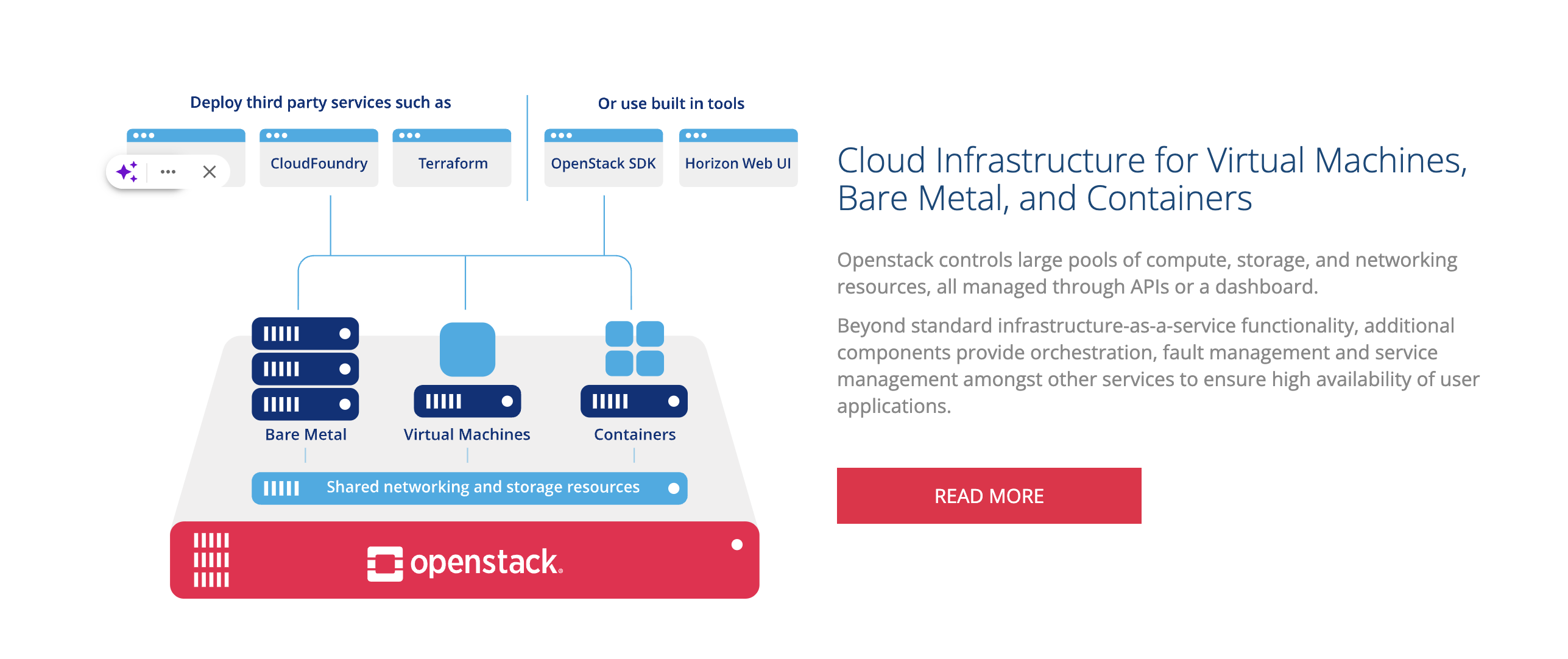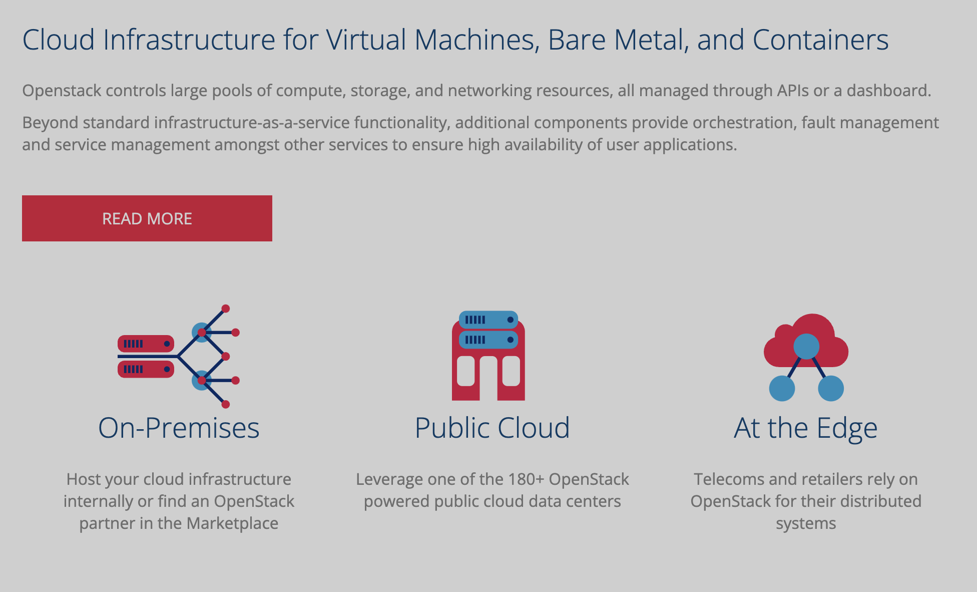 Deployed by thousands. Proven production at scale. OpenStack is a set of software components that provide common services for cloud infrastructure