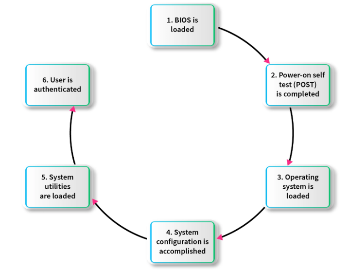 - After the successful completion of Power-On-Self-Test (POST) BIOS find the bootable sequence from CMOS.
