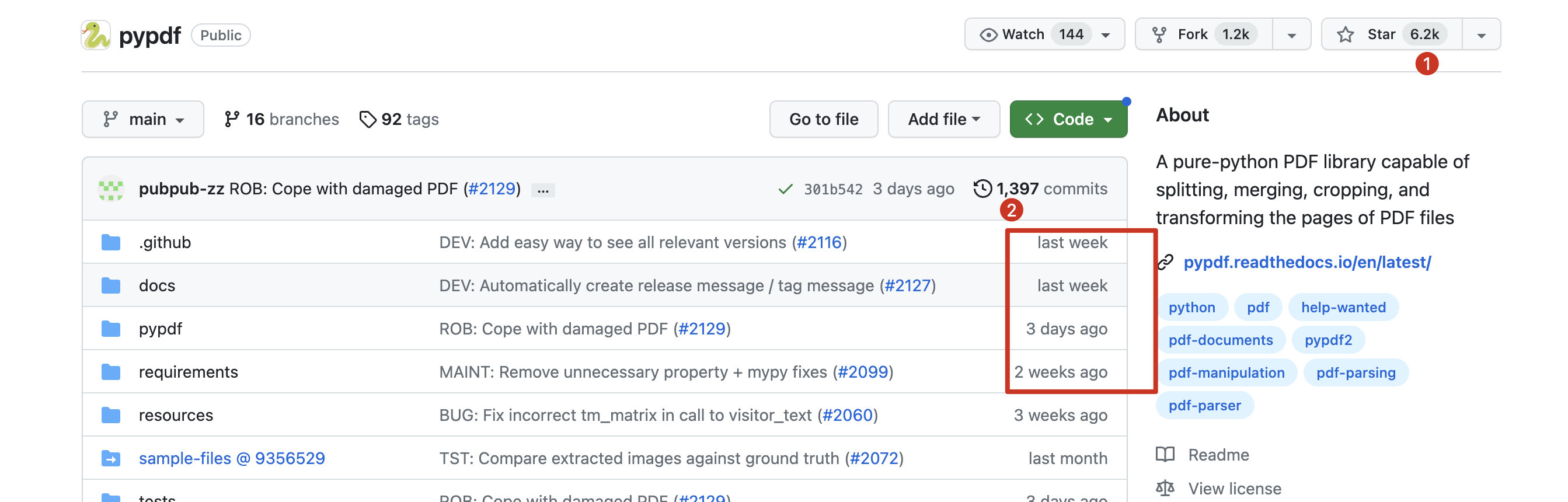 https://github.com/py-pdf/pypdf uses pytest for testing.