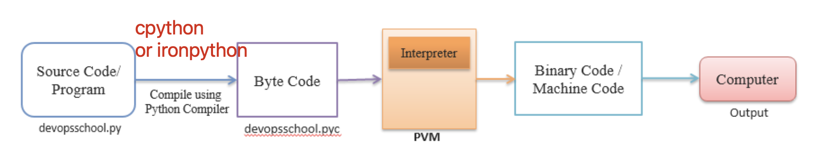 - For CPython, it is Python Virtual Machine (PVM), while for Jython it is Java Virtual Machine (JVM).