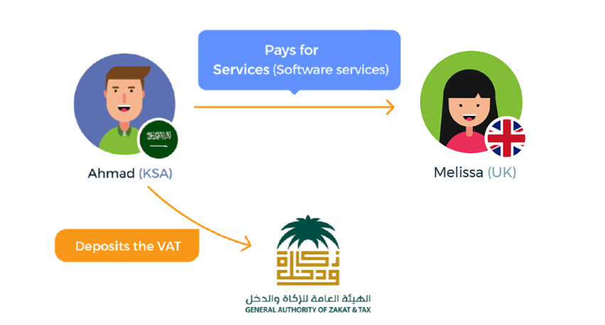 Pays for Services (Software services) - - - - - - - A 4 EE 3M9 Ahmad (KSA) Melissa (UK) Deposits the VAT = Jéallg 615)u dolcll afiall GENERAL AUTHORITY OF ZAKAT & TAX